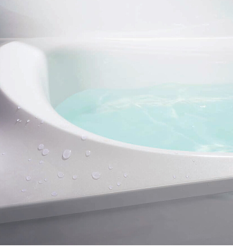 はっ水・はつ油クリア層に覆われた浴槽表面は、水も皮脂も弾いて落としやすくします。