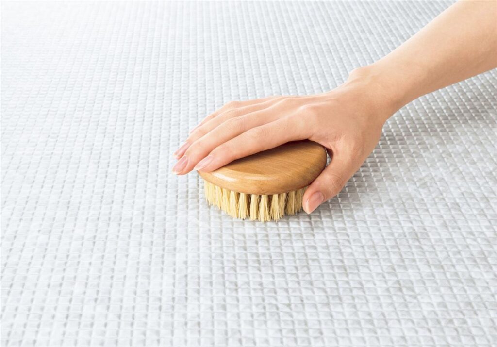 床表面に特殊処理を施した親水層の効果で、皮脂汚れと床の間に水が入り込み、汚れ落ちがスムーズに。ブラシでのお掃除がラクラクです。
