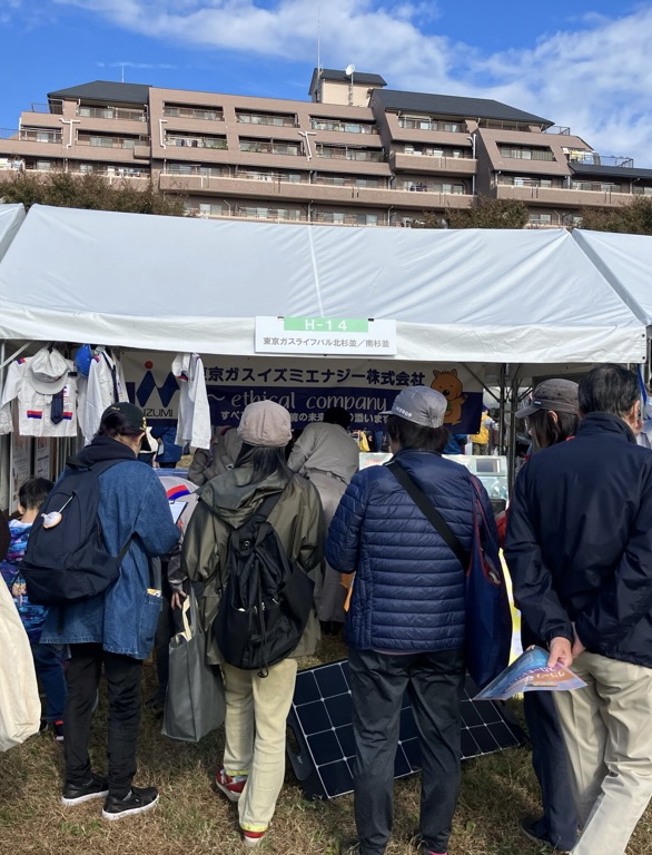 弊社のブースでは、いざと言う時のポータブル電源やソーラーパネルなどの展示のほかに、ガス管を使った万華鏡づくり、ガチャポン(杉並のみ)、子ども向けの制服体験を行いました。