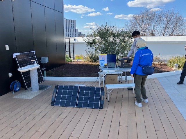 屋上の公園「けやき公園」にて、太陽光発電の実演を行いました!