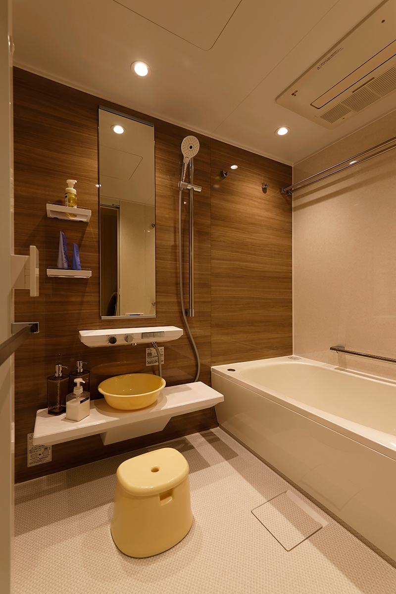 さらに落ち着いた調光調色の中、身体が安定できるファーストクラス浴槽で、以前よりも長湯を楽しむことできています。